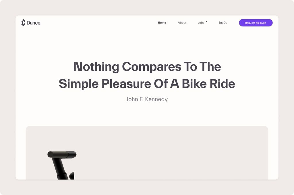 Three founders, one branding agency, and a design studio (thatโs us!) came together to conceptualise and realise Dance, an urban mobility startup providing cutting edge e-bikes via a monthly subscription. The timeline dictated that strategy, branding, and design would need to happen in parallel.